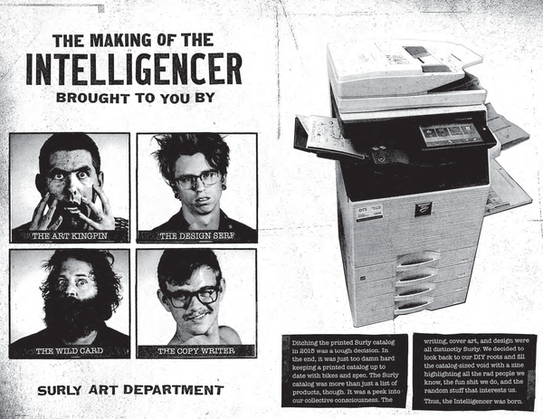 The Intelligencer is a semi-regular zine put out by Surly Bikes. For the most part, everything is done analog — think cutting and pasting, Xerox, and typewriter — and is a highly collaborative effort between myself and Surly's design team. Below are a handful of my favorite spreads from Issues 5 and 6.