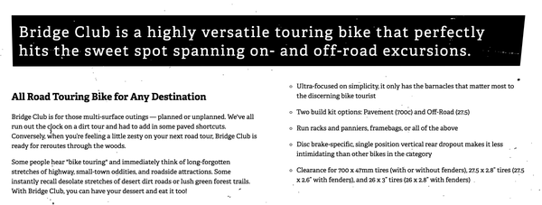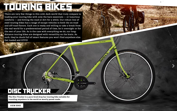 Surly Bikes makes durable and versatile steel bicycles with one goal in mind: Riding Loaded. Here's a smattering of the product copy I wrote for them over the years.